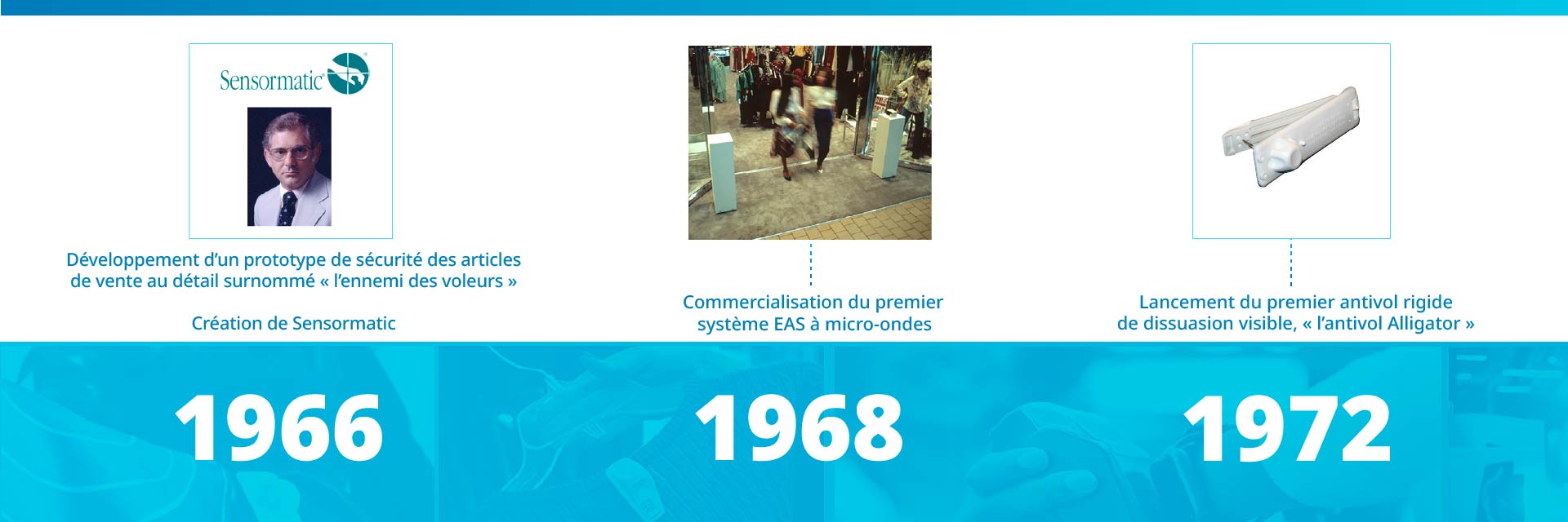 Depuis sa création, Sensormatic Solutions s'est construite autour d’une conviction forte : résoudre les défis du commerce grâce à la collaboration. Tout commence en 1966, lorsque Ronald Assaf, alors gérant d’une épicerie, se retrouve frustré après avoir manqué l’arrestation d’un voleur à l’étalage. Il met alors son cousin, Jack Welch, passionné d’électronique, au défi d’imaginer un système capable de prévenir le vol en magasin. Jack relève immédiatement le challenge et met au point une innovation qui marquera profondément et durablement le secteur du Retail.