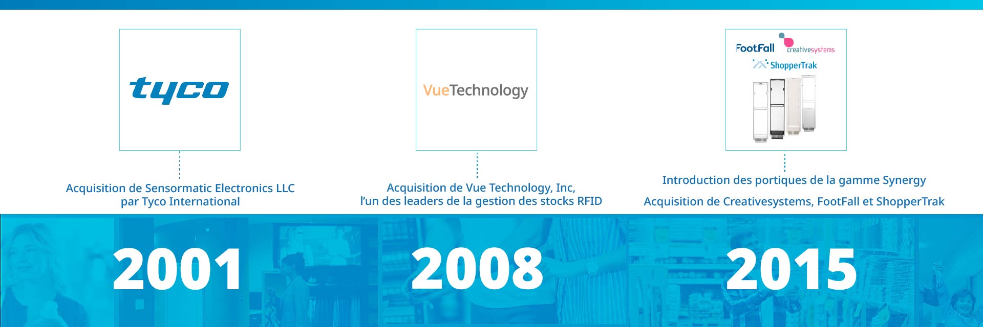 Sensormatic Electronics, qui a rejoint Tyco International en 2001, a relevé le défi en développant des solutions de pointe capables de répondre aux défis les plus urgents et les plus persistants des détaillants. Pendant cette période, l’équipe s'est recentrée sur une nouvelle vision : considérer le Retail comme un secteur précis, basé sur les données.